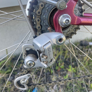 実はこの自転車もそうなんですが、実際には10年以上ご自宅の倉庫の中で眠っていたそうです。例えばフレームやホイール、消耗品に入らない部品類はとても良い状態ですが、タイヤや変速&ブレーキケーブルは経時劣化が出やすい部品で、今回も交換になりました。そして、油脂類(チェーンオイルは油分が抜けてカラカラになっていて、グリス類は乳化、オイル成分が抜けてやはり機能を果たさない状況になっている様子)も補う必要がありますね。また、長年の埃を被っているのを落とすのも手間ですよね。 と、言うことでオーバーホール(と言うかレストアと言うか)を検討いただいて、古い自転車を蘇らせてみませんかと言うお誘いです。当時の楽しみを再現できるように取り組んでみますので。